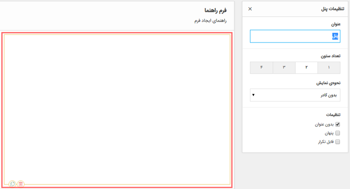 برای دسته بندی کردن فیلدها وبخش بندی فرم و نوع چیدمان فیلدها به صورت دسته ای می توان از پنل استفاده نموده، برای دسترسی به تنظیمات پنل، بر روی پنل کلیک نمایید.